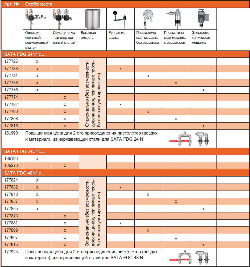 Макс. давление материала в баке: SATA FDG 24: 6 бар | SATA FDG 48: 4 бар